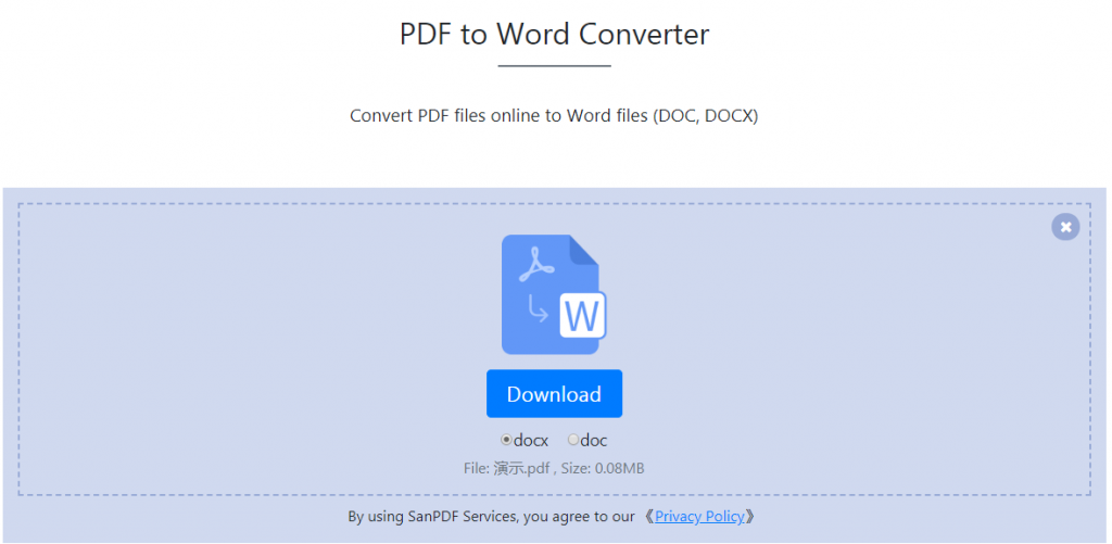 Converting Adobe PDF to Microsoft office Word(.docx,.doc) is hard to say and simple. The best way is to have a good converter and share a converter – SanPDF.