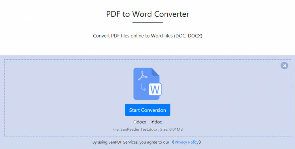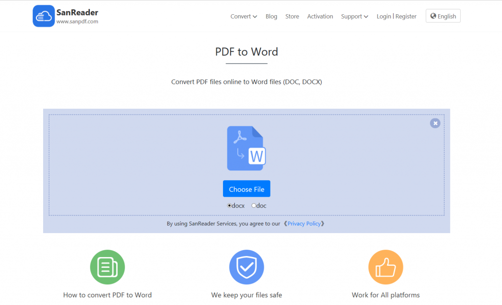 PDF förhindrar oavsiktligt beröringstangentbord för att ändra filinnehållet. Men jag vill redigera pdf-filer för obekvämt, för att undvika oavsiktlig modifiering, men hindrar också de normala förändringarna. Vid denna tidpunkt måste du konvertera pdf till ett orddokument. DOC-dokument kan öppnas med allt Word, medan DOCX-dokument endast kan öppnas med Word2007.Sanpdf Sanpdf har för närvarande den mest populära PDF till Word-konverteraren, vilket spararPDF-filer till Doc eller Docx-filermed ett enda klick.