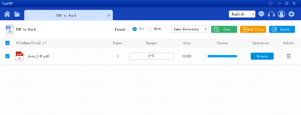 Sanpdf в даний час має найпопулярніший PDF в Word конвертер, зберігаючи PDF-файли в файлах Word одним клацанням миші. Ми підтримуємо онлайн-конверсію таПКперетворення.